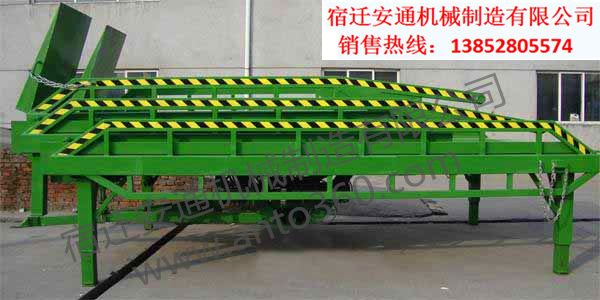 可拆式移動登車橋是與叉車配合使用的貨物裝卸專用輔助設(shè)備。有了它,叉車能直接從地面駛?cè)肫囓噹麅?nèi)部進(jìn)行批量裝卸作業(yè)。產(chǎn)品采用人工絲桿調(diào)調(diào)節(jié),不需接動力電源。只需單人操作,即可實(shí)現(xiàn)貨物的安全快速裝卸。它可使企業(yè)減少大量勞動力,成倍提高裝卸作業(yè)效率,加快貨物流通速度,獲取更大經(jīng)濟(jì)效益。特別適用于作業(yè)場合受地方的限制,可以實(shí)現(xiàn)貨物的快速裝卸,并可以保證使用完后不占用場地。