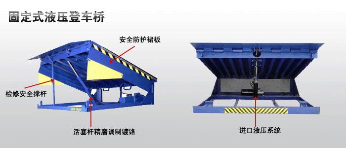 固定式液壓登車橋是實現(xiàn)貨物快速裝卸的專用輔助設(shè)備,它的高度調(diào)節(jié)功能使貨車與庫房的貨臺之間架起一座橋梁,叉車等搬運(yùn)車輛通過它能直接駛?cè)胴涇噧?nèi)部進(jìn)行貨物的批量裝卸,僅需單人作業(yè),即可實現(xiàn)貨物的快速裝卸。